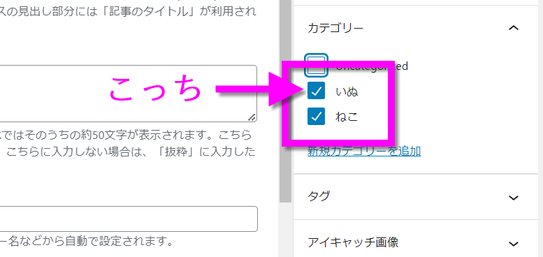 ワードプレスでは一つの記事に複数のカテゴリーを指定できますが、その場合は一つ目のカテゴリーが対象となります。