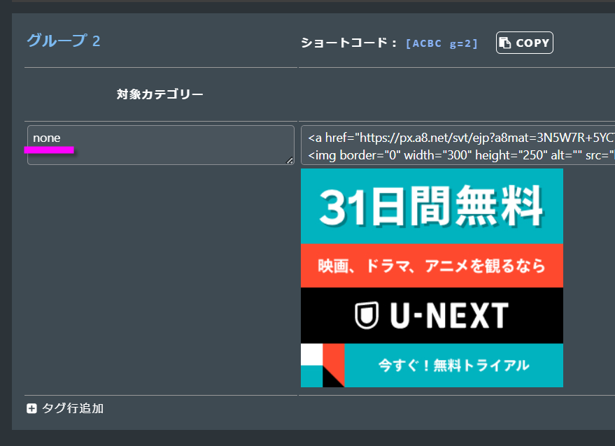 ASPで発行されたアフィリエイトコードをコピペします。