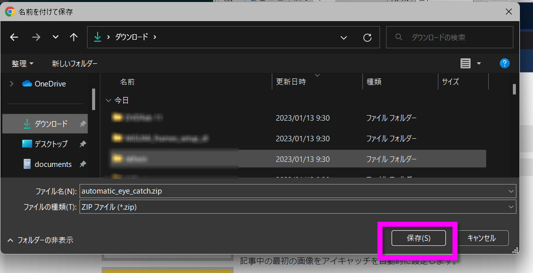 デスクトップやダウンロードフォルダなど、分かり易い所に保存します。