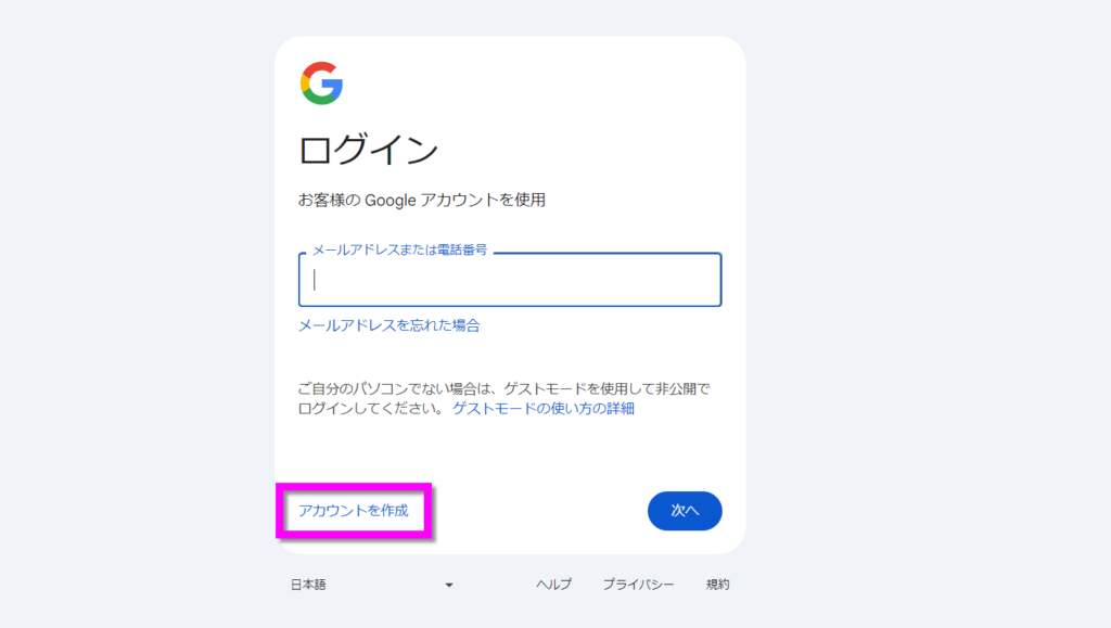 GeminiはGoogleのサービスなので、Gwmini APIの利用にはGoogleのアカウント登録が必須です。