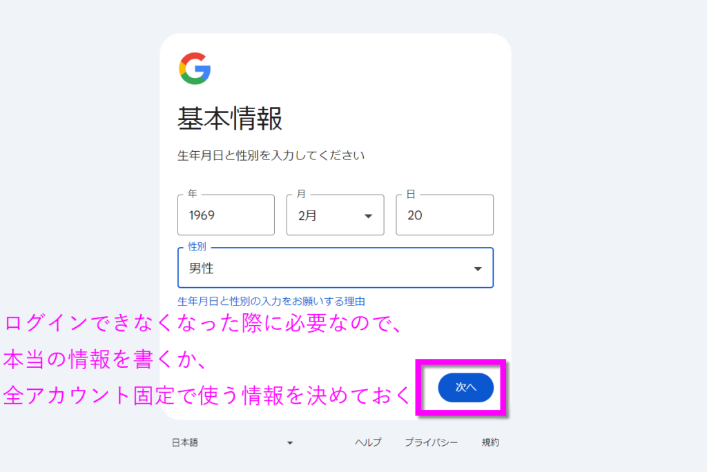 複数のアカウントを次々と取得していくために、段取りや管理がしやすい手順をとの思いで書きましたが、やり方や記入内容は自由です。
