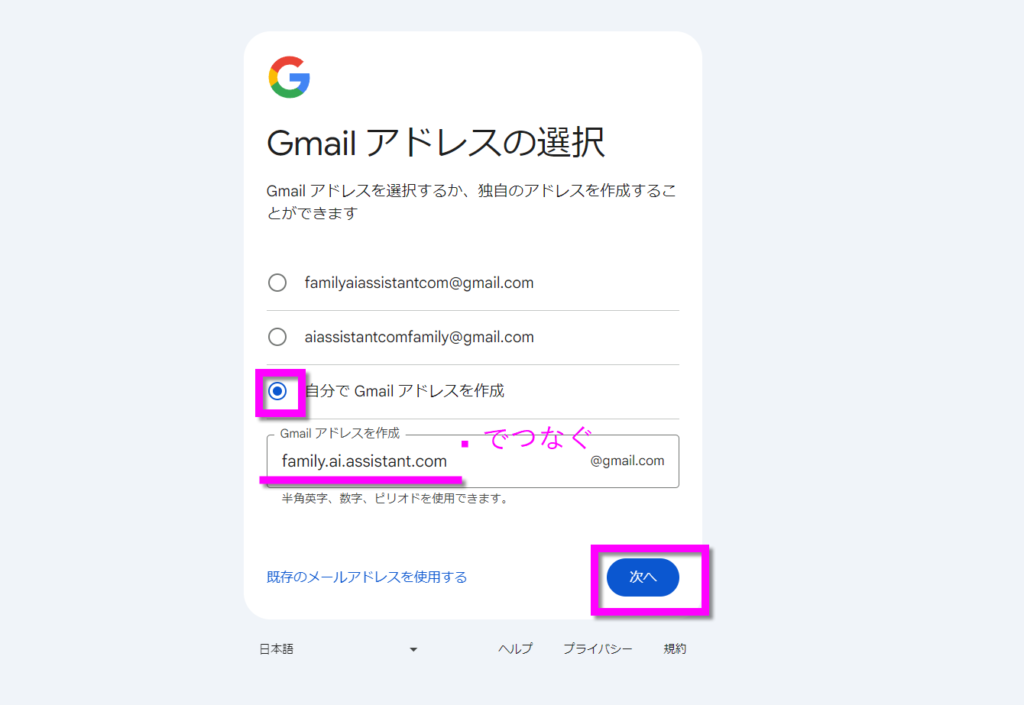 独自ドメインなので人と絶対に被りませんし、毎回考える手間もかからずお勧めです。
