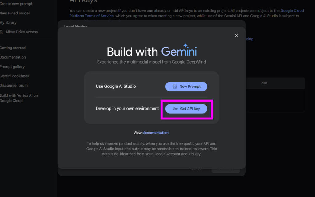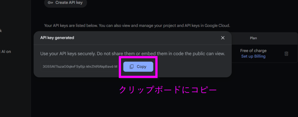Gemini APIキーは、Googleに対してAPI利用登録をすることで無料で発行されます。