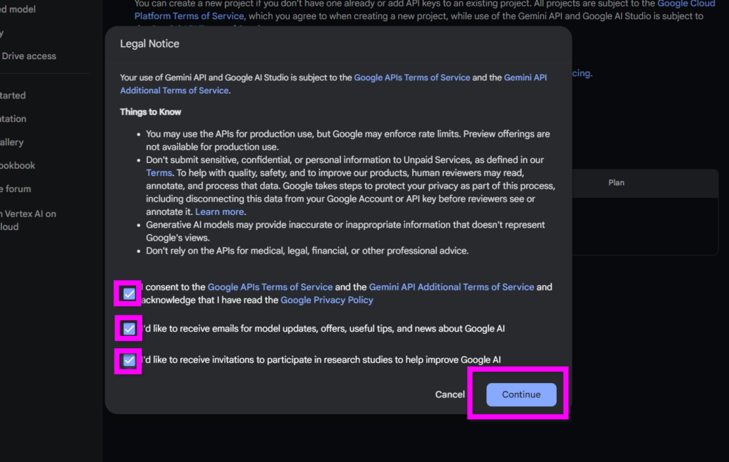 Gemini APIには1日毎や1分毎の利用上限(クオータ)があるので、複数サイトでAI Assistantをインストールする場合は、複数のGoogleアカウントが必要になります。