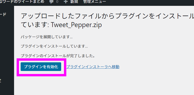 Tweet Pepper のインストール Tweet Pepper 2021.12.02 目次 ダウンロードインストール自動更新を有効化インストール完了 ダウンロード デスクトップなどにダウンロードしておきます。ZIPのままアップロードするので解凍は不要です。 インストール 自動更新を有効化 インストール完了 インストールはこれで終わりです。
