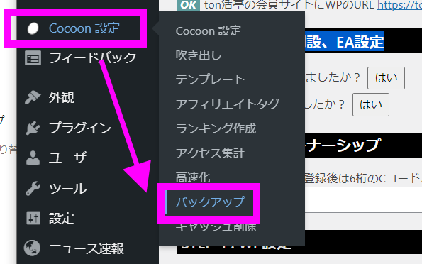 前章 テーマ(Cocoon)のインストール でダウンロードした「Cocon(設定ファイル)」を使います。