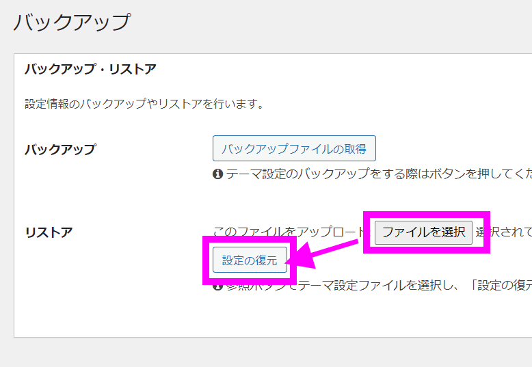先ほどダウンロードしたファイルを選択して復元を実行します。