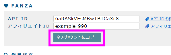 これを使えば、すべてのアカウントに設定中の API ID と アフィリエイトIDをコピーします。