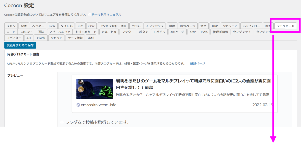 Cocoonの外部ブログカードは、本来ならば外部リンクに対して働く機能です。