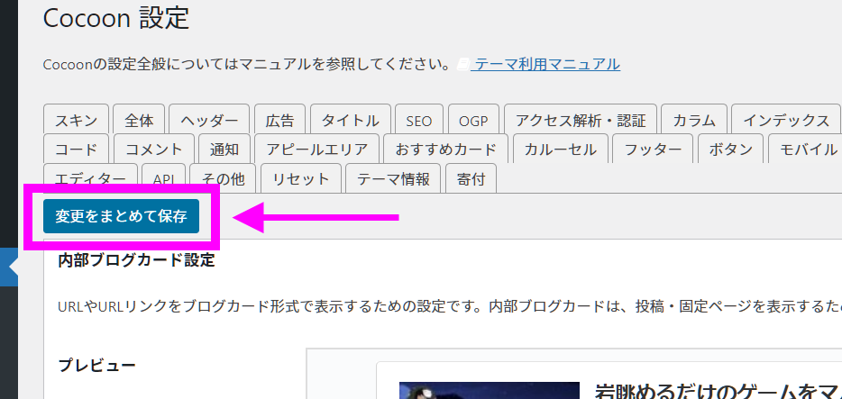 外部ブログカード設定 > ブログカード表示をオンにします。