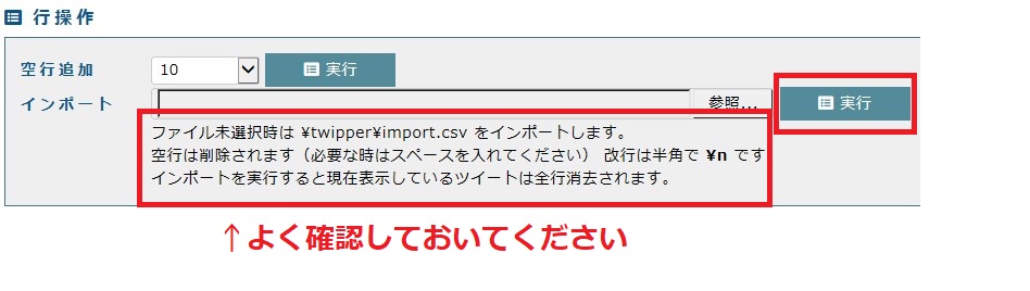 Twipperのファイル内に「import.csv」ファイルを作成します。