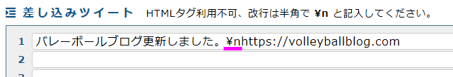 ツイートを自動投稿していく際に、自動生成したツイートの間に定期的の挿入するツイートです。