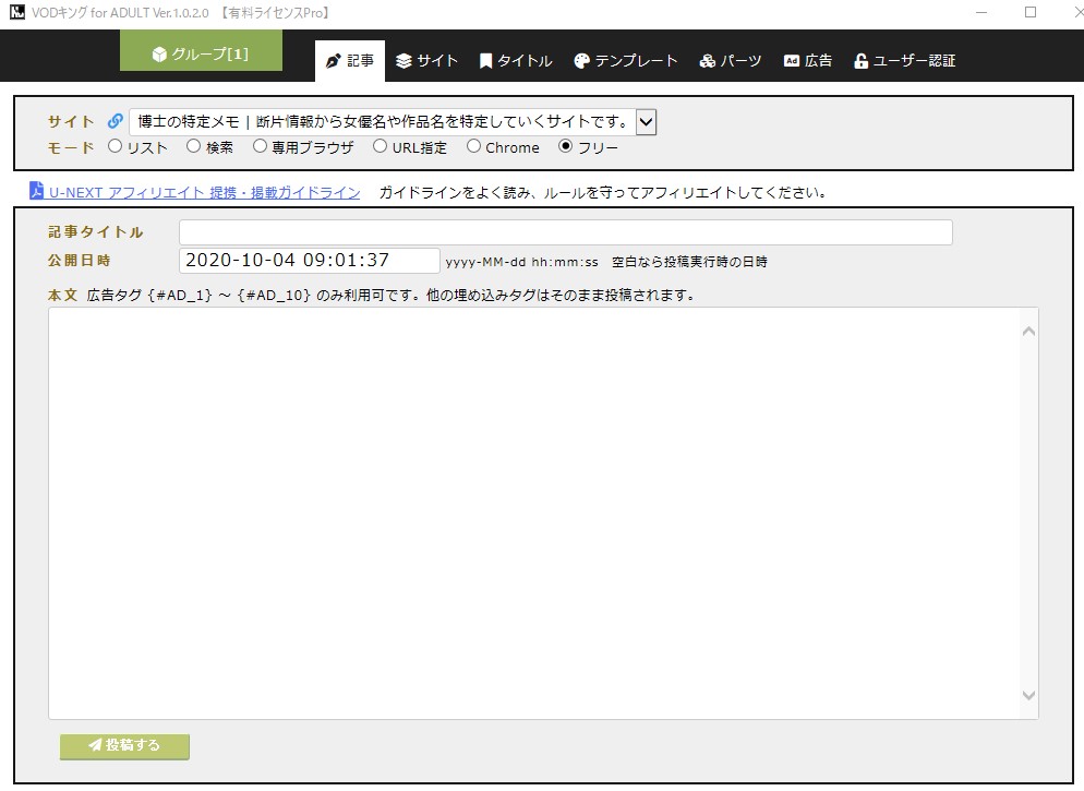 ユーネクストアダルトから取得してきた記事ではなく、完全な白紙から手書きで投稿できるモードです。