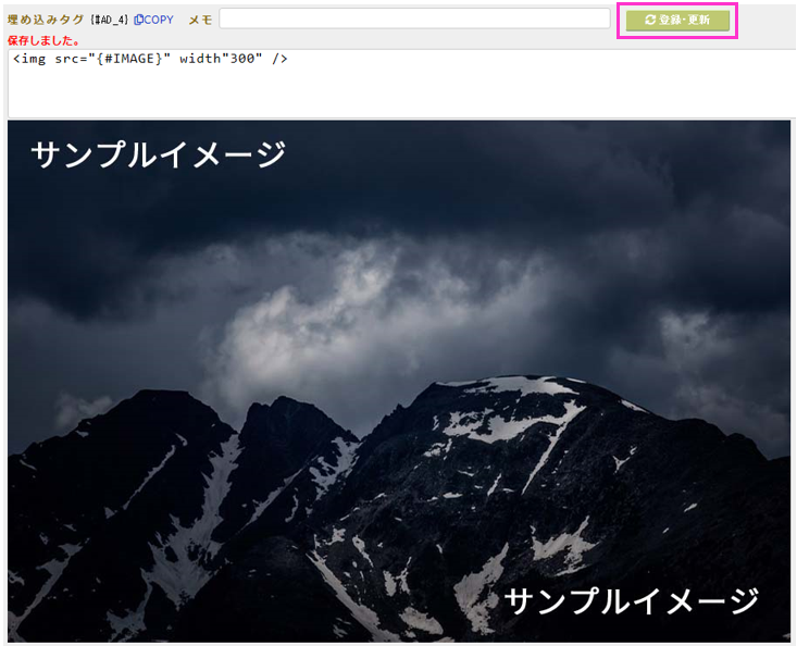 【登録・更新】で保存すると、プレビューが表⽰されます。