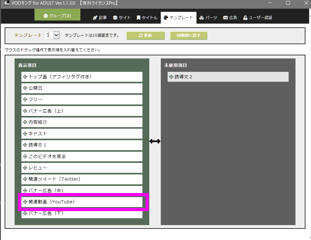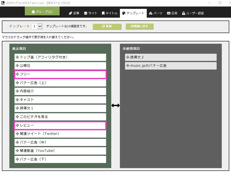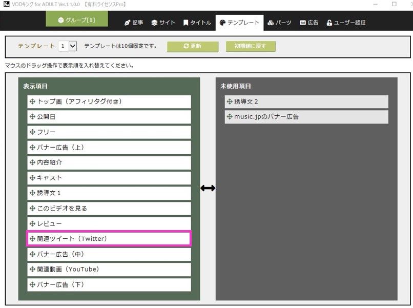 ここで設定するいくつかのパーツを組み合わせてテンプレートを作ります。