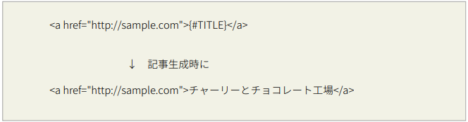 パーツのHTML内に埋め込みタグを記⼊しておけば、記事生成時に各項目が自動的に挿⼊されます。