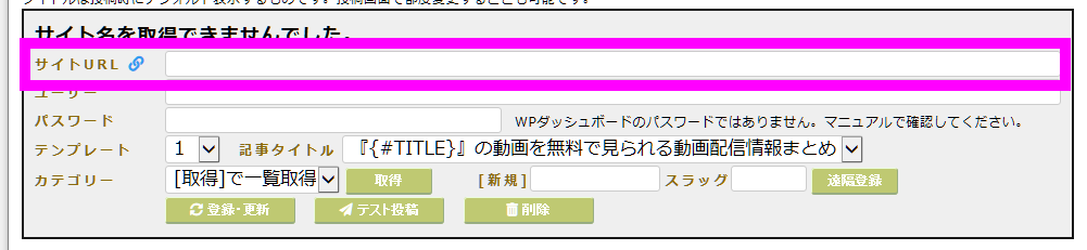 サイトURL、ユーザー、パスワードが正しくないとエラーになります。